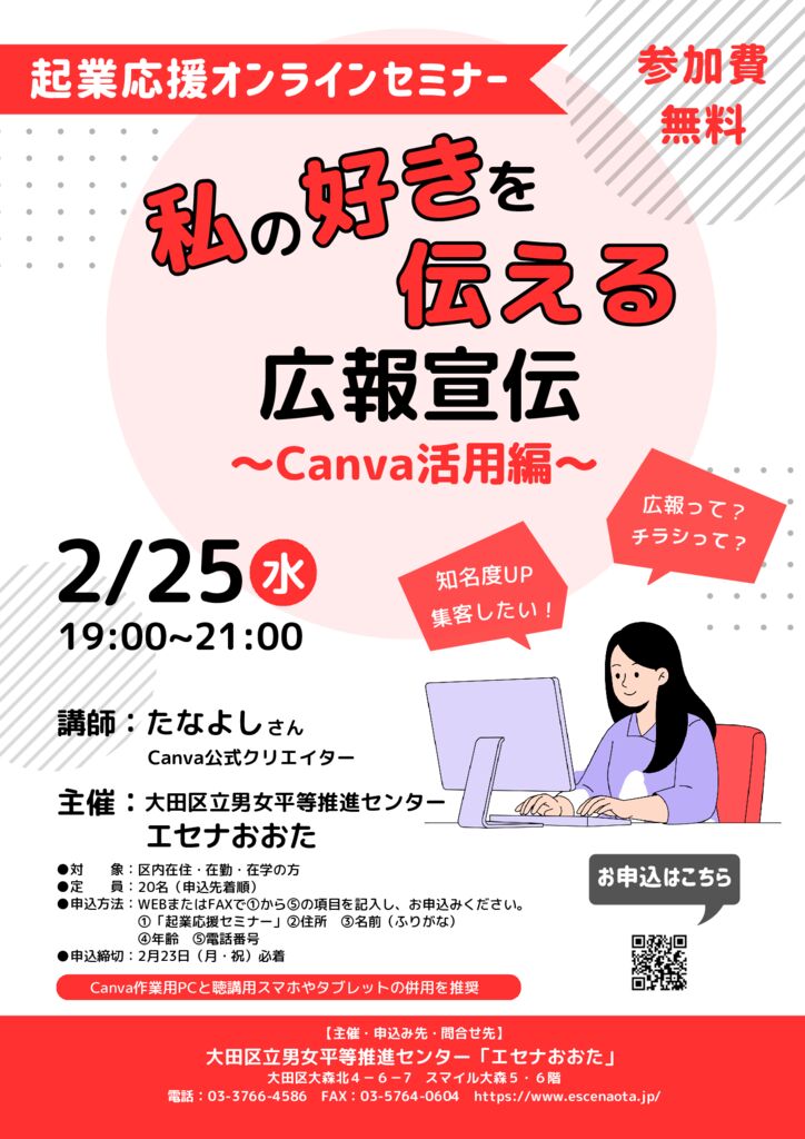 【申込受付中】起業応援オンラインセミナー 私の好きを伝える広報宣伝 ~Canva活用編~